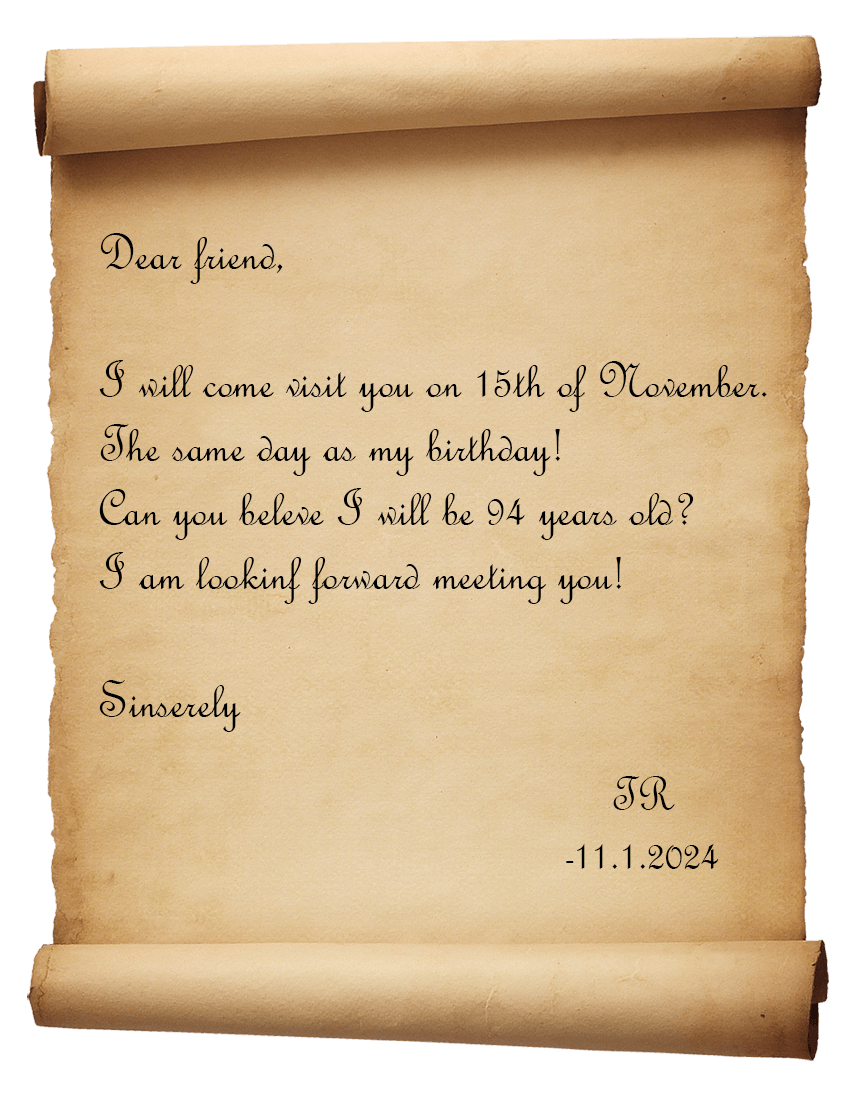 You look around the room, just to find a letter sitting on top of the closest table.